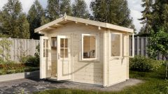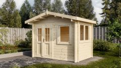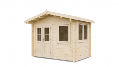 Садовый дом № 4 - сборная конструкция, оптимально компактных размеров. Общая площадь 4,7 кв.м. позволяет с комфортом обустроить внутреннее пространство для отдыха. Два  окна и остеклённые двери обеспечивают естественное освещение помещения, создавая приятную и светлую атмосферу. Дополнительно усовершенствовать и расшить зону отдыха садового дома возможно террасой.