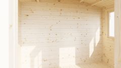 Изготовлен из экологически чистого строганого профилированного бруса хвойных пород камерной сушки, который отличается стабильным качеством и долговечностью. Толщина бруса 44 мм при высоте 145 мм (рабочая высота 135 мм). Брус обработан с 4-х сторон. Две плоскости – видовые (гладкие), а две отфрезерованы в виде 2-х замкового паза, для надежного плотного соединения между собой в вертикальную стену. В стеновых элементах и балках крыши присутствуют «чашки» - конструктивный элемент соединения на углах.