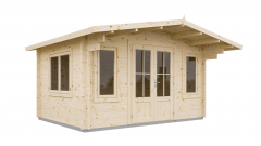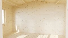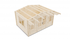 Изготовлен из экологически чистого строганого профилированного бруса хвойных пород камерной сушки, который отличается стабильным качеством и долговечностью. Толщина бруса 44 мм при высоте 145 мм (рабочая высота 135 мм). Брус обработан с 4-х сторон. Две плоскости – видовые (гладкие), а две отфрезерованы в виде 2-х замкового паза, для надежного плотного соединения между собой в вертикальную стену. В стеновых элементах и балках крыши присутствуют «чашки» - конструктивный элемент соединения на углах.