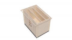 Хозблок № 4 - малое сооружение, в виде сборного конструктора, изготовленного из экологически чистого строганого профилированного мини-бруса хвойных пород камерной сушки. Предназначен для организации хранения необходимых вещей и инвентаря на придомовой территории и садовых участках.