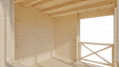 Изготовлена из экологически чистого строганого профилированного мини-бруса хвойных пород камерной сушки, который отличается стабильным качеством и долговечностью. Толщина бруса 44 мм при высоте 145 мм (рабочая высота 135 мм). Брус обработан с 4-х сторон. Две плоскости – видовые (гладкие), а две отфрезерованы в виде 2-х замкового паза, для надежного плотного соединения между собой в вертикальную стену. В стеновых элементах и балках крыши присутствуют «чашки» - конструктивный элемент соединения на углах.