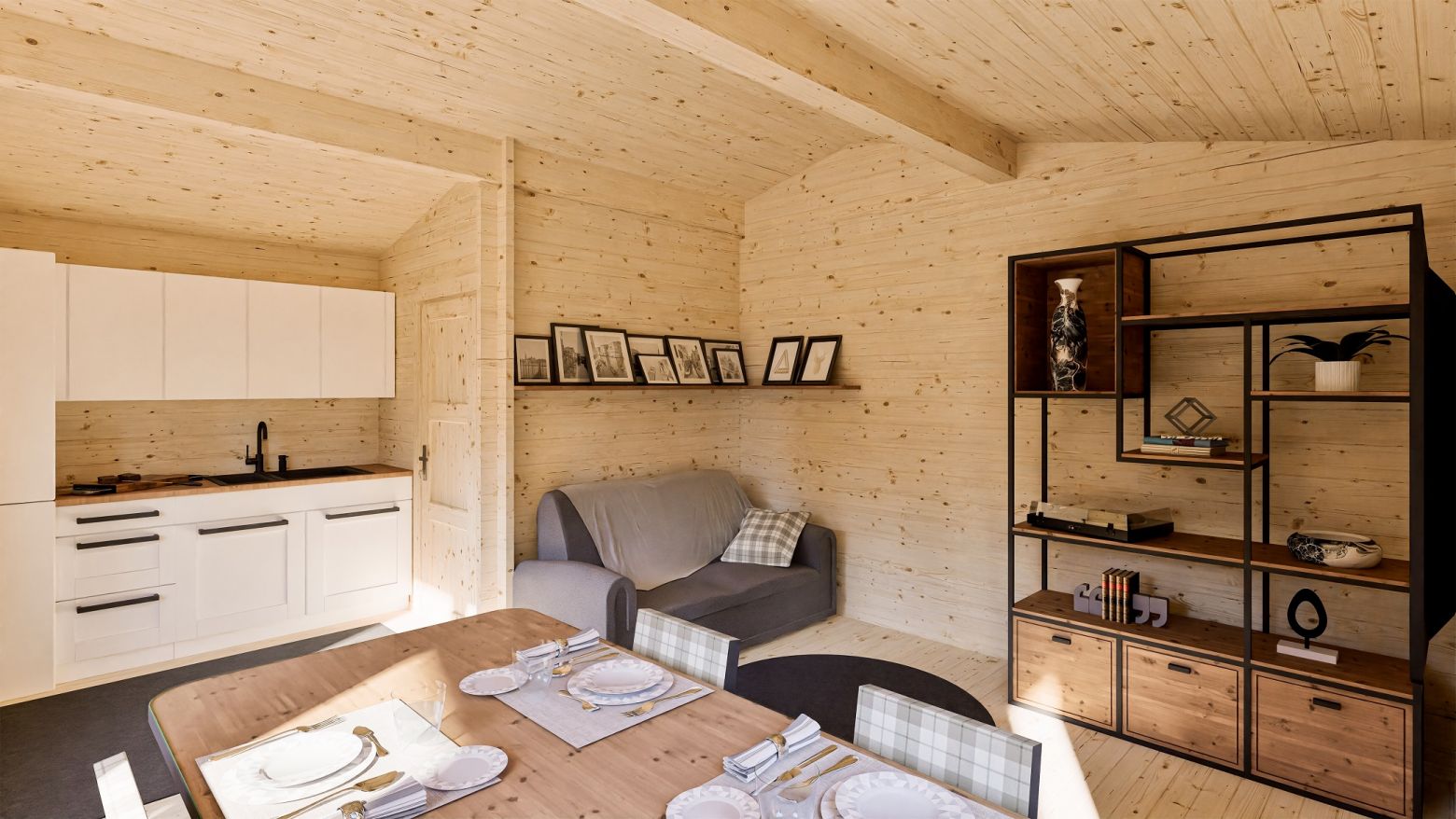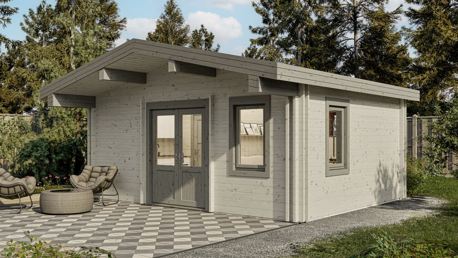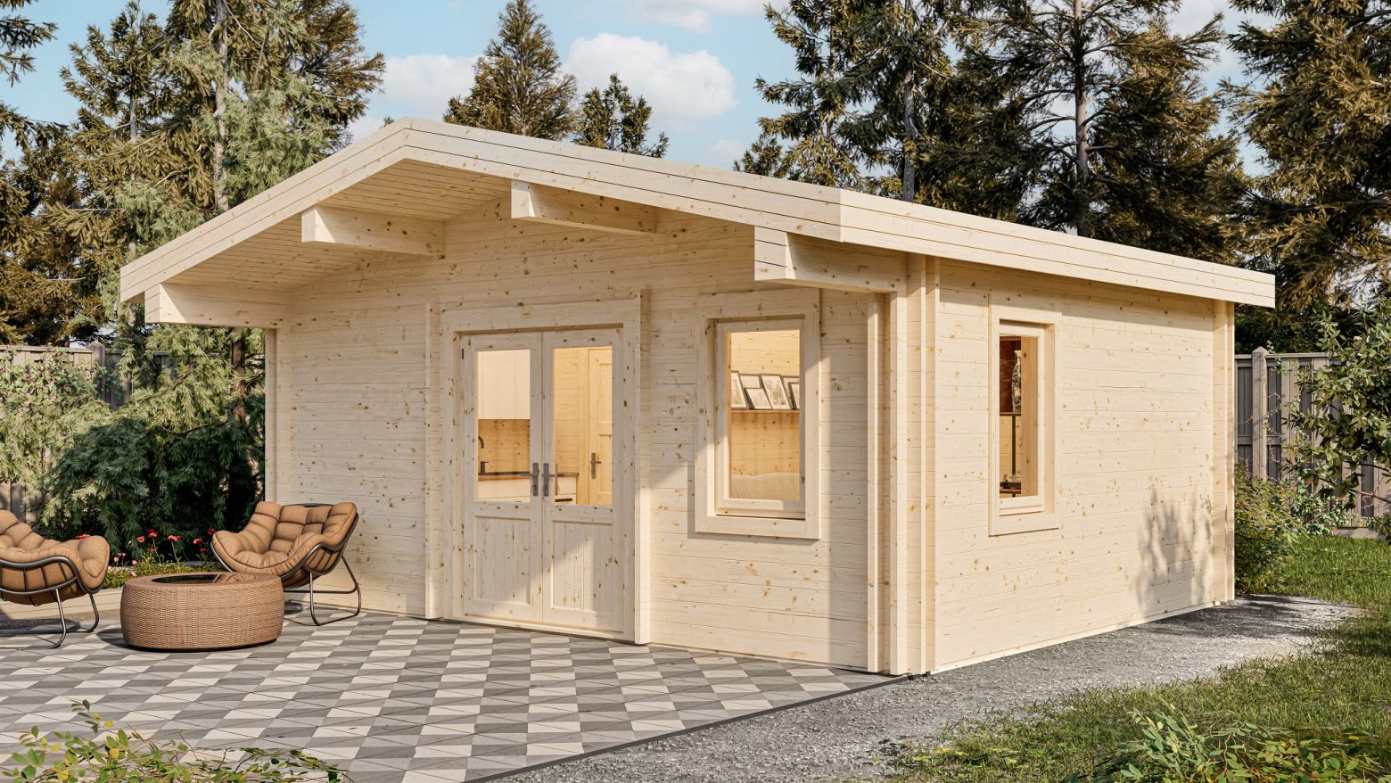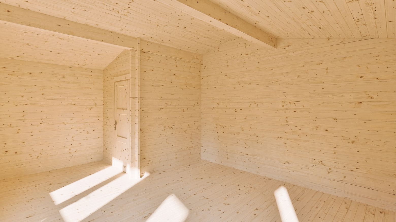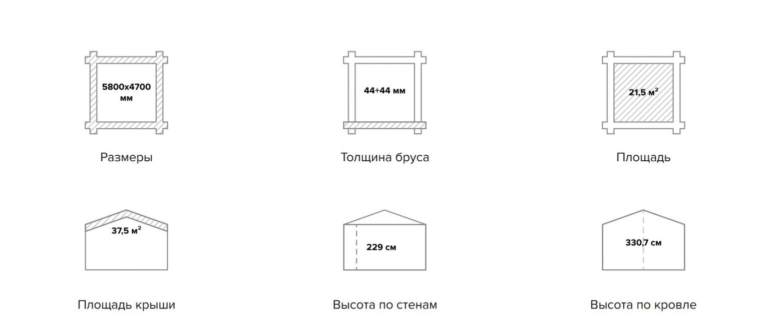 Дачный дом № 21 классической конструкции 5,8 х 4,7 м со скатной крышей. Общая площадь 21,5 кв.м. позволяет с комфортом обустроить внутреннее пространство. Внутри предусмотрена отдельная зона для размещения санузла - 2,9 м². Конструкция из двойного бруса позволяет выполнить скрытое утепление внутри стен, обеспечивая комфорт в прохладное время. Два окна и остеклённые двери наполняют дом естественным светом, создавая ощущение простора, а навес над входом надёжно защитит от дождя и солнца. Дополнительно усовершенствовать конструкцию можно террасой, которую будет накрывать широкий свес входной группы.