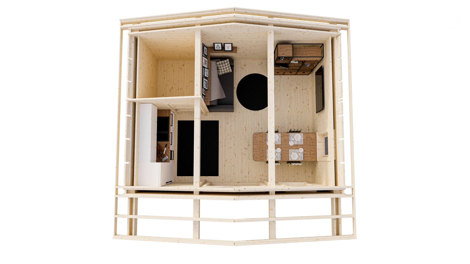 1. Стандарт: спецификация на изделие, стеновой брус, балки крыши, половая доска (+плинтус), доска крыши, фундаментная балка, крепеж, инструкция по монтажу.