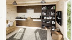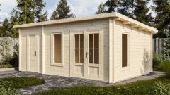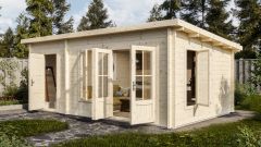 Садовый дом № 21 с хозблоком - строительная конструкция с односкатной крышей. Просторное помещение 14,6 кв.м. позволяет с комфортом обустроить внутреннее пространство, разместив там гостиную, игровую, столовую, летнюю кухню или другую нужную зону отдыха. Хозблок площадью 7 кв.м. с глухой дверью будет удобен для хранения нужных вещей, а зону входа можно дополнить террасой.