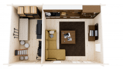 1. Стандарт: спецификация на изделие, стеновой брус, балки крыши, половая доска (+плинтус), доска крыши, фундаментная балка, крепеж, инструкция по монтажу.