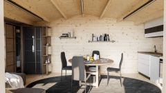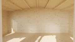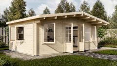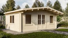 Садовый дом № 21 - строительная конструкция с двухскатной кровлей и широким свесом над входной группой. Просторное помещение 21,2 кв.м. позволяет с комфортом обустроить внутреннее пространство, разместив там гостиную, игровую, столовую, летнюю кухню или другую нужную зону отдыха. Отличный вариант для увеличения жилого пространства и украшения приусадебного участка. Зону входа можно дополнить террасой, которая будет закрываться широким свесом.