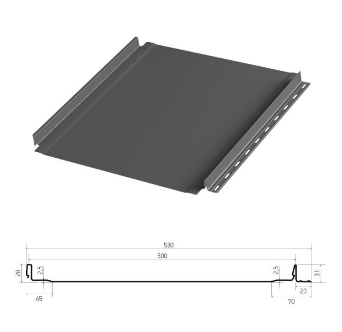 Фальцевая панель Aquaclick Эталон - гладкий профиль с самозащелкивающимся замком, изготовленный из профилированной стали с защитным слоем от коррозии и декоративно-защитным полимерным покрытием. Применяется в качестве покрытия кровельных и фасадных систем.