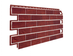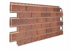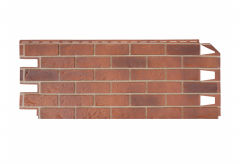 Фасадная панель, фактура Кирпич – отделочный фасадный материал, изготовленный из смеси полипропилена и микрокальцита методом литья под давлением с покрытием лицевой поверхности водно-акриловой краской, фактура которого имитирует натуральный кирпич. Предназначен для отделки цоколя и наружных стен зданий, фасадов веранд, террас жилых, административных и коттеджных зданий.