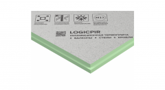 Термоплита LOGICPIR изготовлена из полимеров-реактопластов с газонаполненной закрытой ячеистой структурой, содержащей перманентный газ. Материал обладает пониженной теплопроводностью, двусторонняя фольгированная обкладка выполняет роль отражающей изоляции и обеспечивает снижение затрат на энергоресурсы.