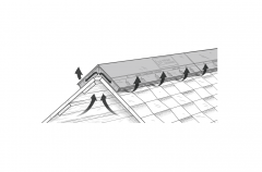 Коньковый аэратор стандарт изготовлен из полипропилена. Применяется на скатных кровлях от 12 до 45 градусов для удаления избыточной подкровельной влаги. Имеет фильтр из пенополиуретана, который защищает от попадания в подкровельное пространство насекомых и атмосферных осадков. Монтаж производится путем механической фиксации. На коньковый аэратор монтируется коньково-карнизная черепица, которая соответствует основной цветовой гамме крыши, что делает коньковый аэратор незаметным. Для правильной работы аэратора необходимо предусмотреть приток воздуха от карниза. Коньковый аэратор стандарт обеспечивает вентиляцию до 25 м2 подкровельного пространства.