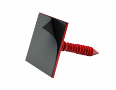 Крепеж для фиксации плит XPS и мембраны №02 – крепежный элемент из полиэтилена низкого давления, представляющий собой шип размером 78 мм с резьбой для фиксации в материале и плоскую площадку с приклеивающим слоем, покрытым защитной пленкой. Применяется для фиксации XPS-плит и профилированных мембран к разным поверхностям.