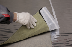 При устройстве полов по лагам и перегородкам материал нарезают на ленты и укладывают в местах контакта с основанием. Самоклеящийся боковой нахлест дополнительно прокатывается валиком. Торцевые нахлесты проклеивают самоклеящейся лентой-герметиком.