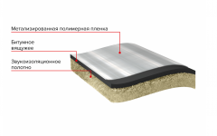 Применяемая в материале металлизированная полиэфирная пленка обладает высокой стойкостью к проколу и предотвращает увлажнение звукоизолирующего слоя при укладке цементно-песчаной стяжки.