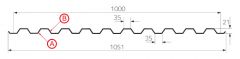 Профилированный лист С-21 – профнастил с рельефом в виде аккуратных симметричных гофр, придающих материалу хорошую несущую способность и привлекательный вид. Боковые края С-21 (A) стыкуются в верхней части волны, образуя герметичные соединения.
