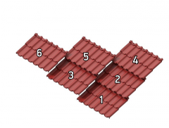 Укладку модульной черепицы Стокгольм следует вести справа налево, при этом левый лист всегда накрывает сверху правый.