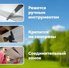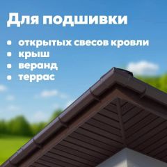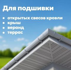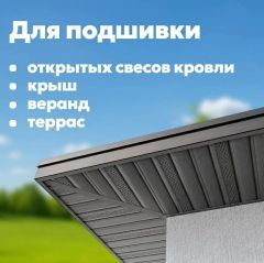 Используется для защиты поверхности свесов кровли от атмосферных осадков и воздействий внешней среды, а также придает эстетичный вид пространству под кровлей. Софиты обеспечивают необходимый забор воздуха в подкровельном пространстве, что предотвращает возникновение грибка и плесени на несущих деревянных элементах.