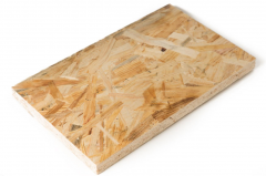 Плита с ориентированной стружкой, OSB-3 - ориентированно-стружечная плита производится путём прессования под высоким давлением щепы древесных пород (лиственных, хвойных), соединенных синтетической смолой с пониженным содержанием органических веществ.