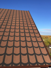 Рулонная гибкая черепица – кровельное покрытие на основе полиэфира, пропитанного битумным вяжущим с добавлением СБС полимеров. Применяется для устройства однослойного декоративного покрытия на скатных кровлях со сплошным, ровным, сухим, деревянным настилом малоэтажных зданий и сооружений, частного домостроения, высотой до трех этажей с устройством холодного чердака, при угле наклона кровли от 3° до 60°.