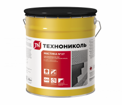 Мастика приклеивающая №27 — многокомпонентная однородная масса, состоящая из битума, минерального волокна, минеральных наполнителей, растворителя и технологических добавок. Применяется для приклеивания плит из экструзионного пенополистирола к битумным, битумно-полимерным изоляционным материалам, а также к бетонным поверхностям в системах изоляции фундаментов.