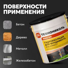 Мастика битумная AquaMast предназначена для обмазочной гидроизоляции конструкций (бетонных, железобетонных, металлических, деревянных и др.), заглубляемых в землю и контактирующих с влажной средой: фундаментов, свай и т.п. Создает непроницаемый для влаги бесшовный слой, надежно предотвращающий контакт фундаментного основания с влагой, грунтовыми и сточными водами. Наносится шпателем или кистью толщиной не более 2 мм за 1 слой на поверхность любой геометрии.