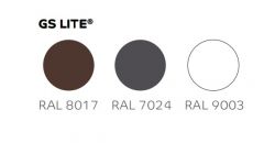 Водосточная система GS lite круглого сечения изготавливается в цветах: RAL 7024 - серый графит, RAL 8017 - коричневый, RAL 9003 – белый.