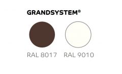 Водосточная система круглого сечения GrandSystem изготавливается в двух цветах: RAL9010 - белый и RAL8017 - коричневый.