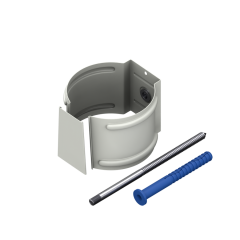 Хомут с комплектом крепления изготавливается из оцинкованной стали и используется для крепления труб к стенам здания.